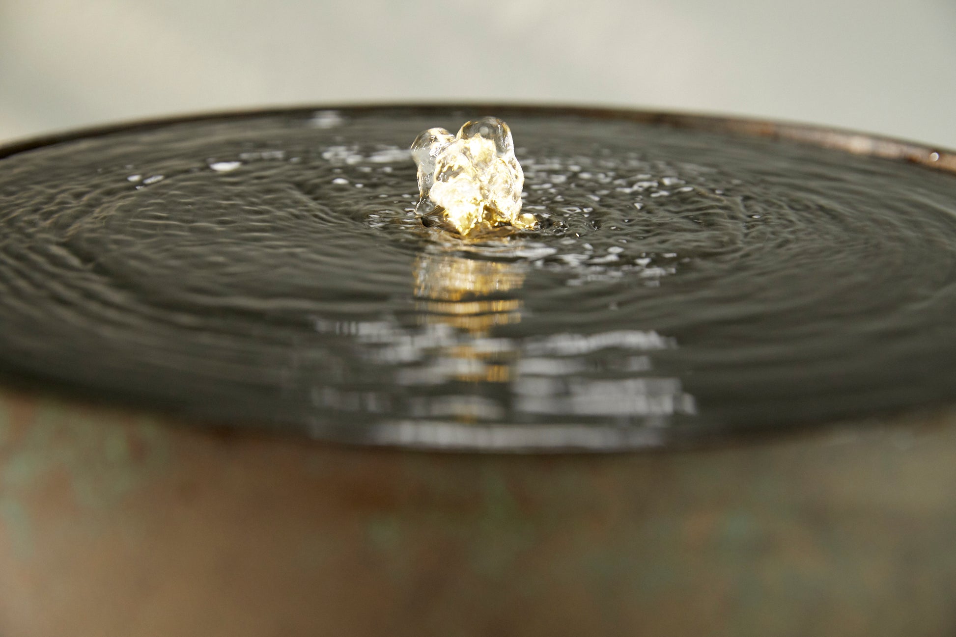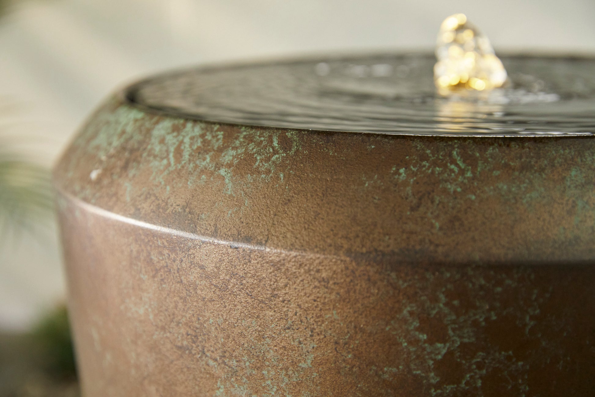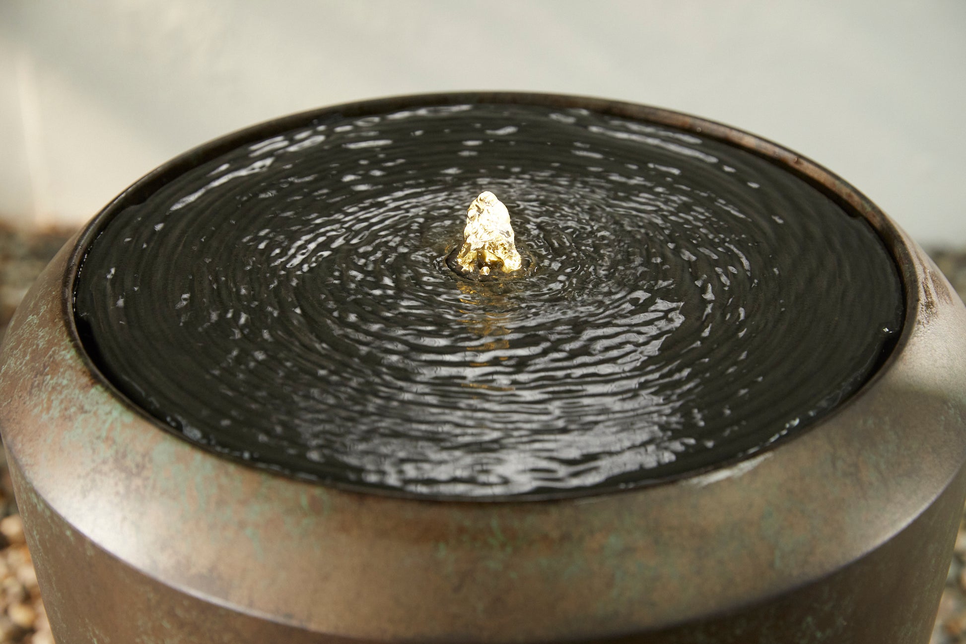A contemporary and stylish Water feature made from 100% recycled materials and carries a silky green-bronze finish